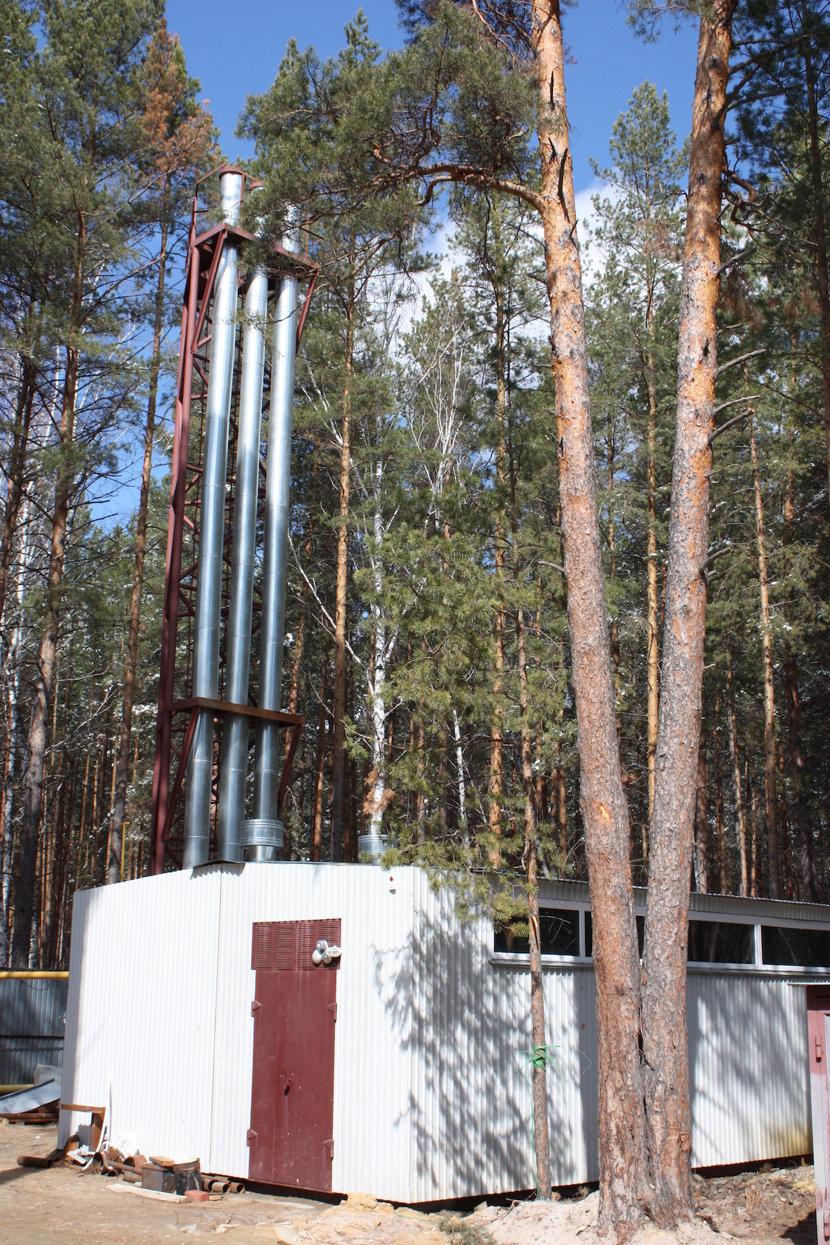Дымовые трубы могут быть отдельно стоящими возле здания котельной или самонесущими на своем фундаменте, где располагается несколько утепленных труб для каждого из котлов. Конструкция обычно комплектуется также лестницей и площадкой для обслуживания дымоходов.